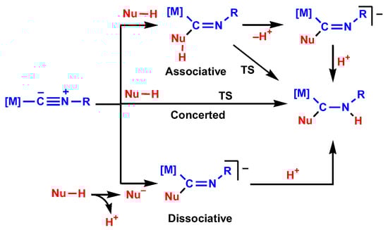 Mechanisms of nucleophilic addition to metal-bound isocyanides.