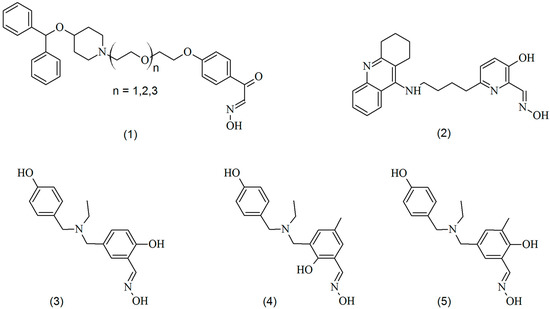 Structures of some neutral oximes reported in literature (1 [11], 2 [18] and 3–5 [22]).