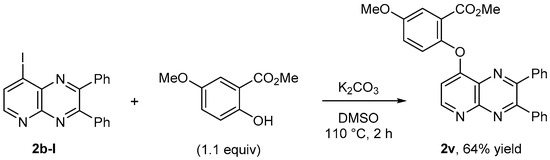Conversion of 8-iodo-2,3-diphenylpyrido[2,3-b]pyrazine (2b-I) into ether 2v.