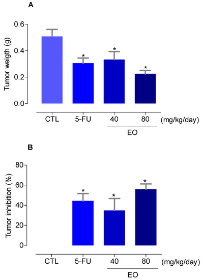 Lima EJSPd, Alves RG, D´Elia GMA, Anunciação TAd, Silva VR, Santos LdS, Soares MBP, Cardozo NMD, Costa EV, Silva FMAd, et al. Antitumor Effect of the Essential Oil from the Leaves of Croton matourensis Aubl. (Euphorbiaceae). Molecules. 2018; 23(11):2974. https://doi.org/10.3390/molecules23112974