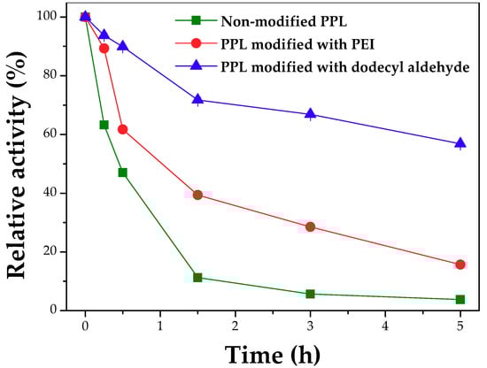 - Paula, A.V.; Urioste, D.; Santos, J.C.; Castro, H.F. Porcine pancreatic lipase immobilized on polysiloxane–polyvinyl alcohol hybrid matrix: Catalytic properties and feasibility to mediate synthesis of surfactants and biodiesel. J. Chem. Technol. Biotechnol. 2007, 82, 281–288. [Google Scholar] [CrossRef]