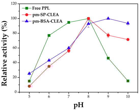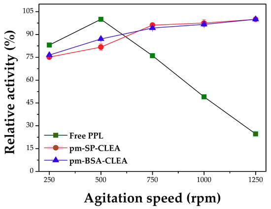 2.5. Selection of Additives for Preparation of PPL CLEAs Using 0.8% (w/v) Starch as Pore-Making Agent