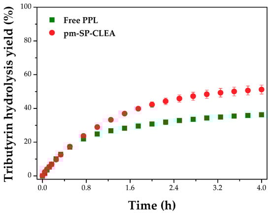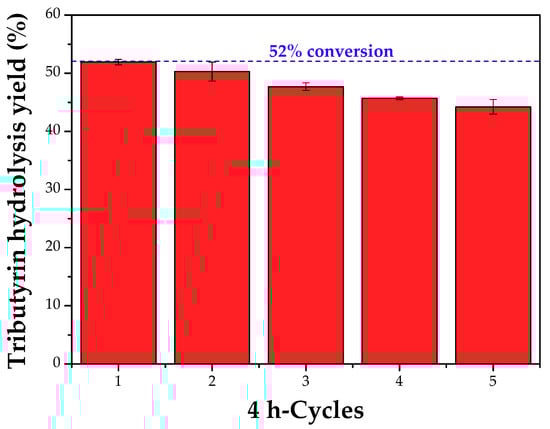 3.8. Biocatalyst Reuse in Hydrolysis of Tributyrin