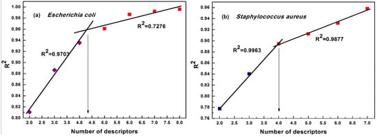 Breaking point rule for determination of the descriptor number. (a) is breaking point rule for model against E. coli, (b) is the breaking point rule for model against S. aureus.