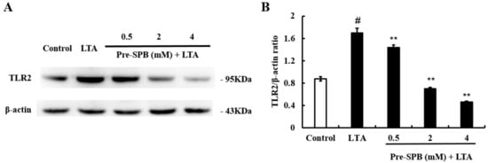 2.3. The Effect of SPB on LTA-Induced TLR2 Expression