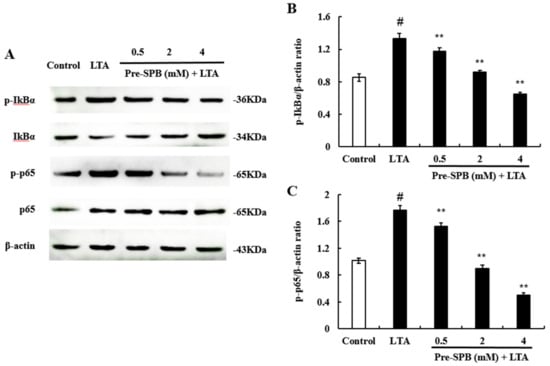 2.4. The Effect of SPB on NF-κB Signaling Pathway Activation
