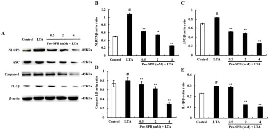 2.5. The Effect of SPB on NLRP3 Inflammasome Activation