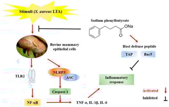 Chicago/Turabian StyleWang, Xin, Mengmeng Zhang, Ning Jiang, and Aizhong Zhang. 2018. "Sodium Phenylbutyrate Ameliorates Inflammatory Response Induced by Staphylococcus aureus Lipoteichoic Acid via Suppressing TLR2/NF-κB/NLRP3 Pathways in MAC-T Cells" Molecules 23, no. 12: 3056. https://doi.org/10.3390/molecules23123056