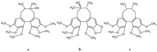 - Opletal, L.; Sovová, H.; Bártlová, M. Dibenzo [a,c] cyclooctadiene lignans of the genus Schisandra: Importance, isolation and determination. J. Chromatogr. B 2004, 812, 357–371. [Google Scholar] [CrossRef]