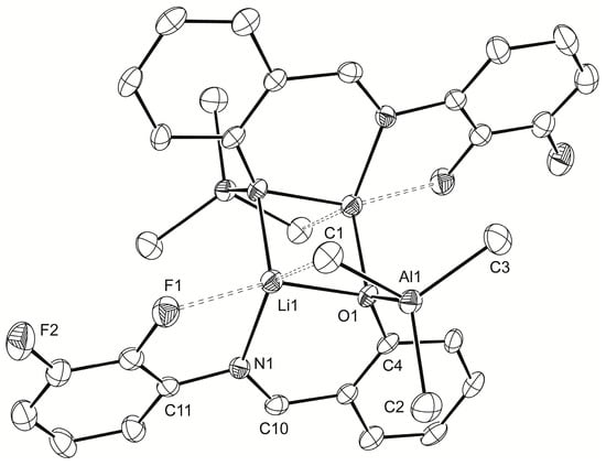 3.2. Synthesis of Complex [LiAlMe3(O-2-{2,3-C6H3F2N=CH}C6H4)], [LiAlMe3La] (1)