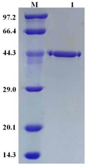 - Laemmli, U.K. Cleavage of structural proteins during the assembly of the head of bacteriophage T4. Nature 1970, 227, 680–685. [Google Scholar] [CrossRef] [PubMed]