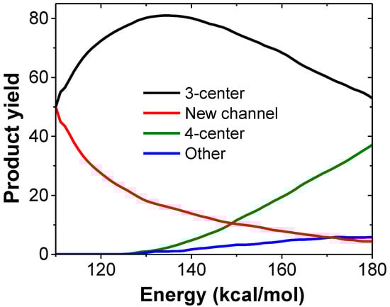 Figure 2 shows the product yields as a function of excitation energy obtained in our kinetic simulations from VCN. As seen in the figure, at low excitation energies (<150 kcal/mol) the new channel (red) is more important than the 4-center channel (green) and accounts for half of the HCN eliminations when the excitation energy is 110 kcal/mol.