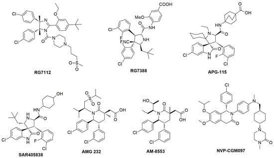 - Vu, B.; Wovkulich, P.; Pizzolato, G.; Lovey, A.; Ding, Q.; Jiang, N.; Liu, J.J.; Zhao, C.; Glenn, K.; Wen, Y.; et al. Discovery of RG7112: A Small-Molecule MDM2 Inhibitor in Clinical Development. ACS Med. Chem. Lett. 2013, 4, 466–469. [Google Scholar] [CrossRef]