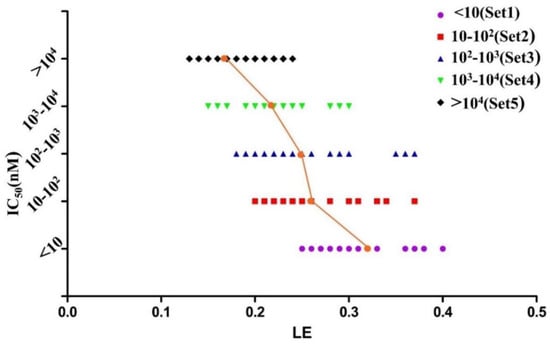 - Cortes-Ciriano, I. Benchmarking the Predictive Power of Ligand Efficiency Indices in QSAR. J. Chem. Inf. Model. 2016, 56, 1576–1587. [Google Scholar] [CrossRef]