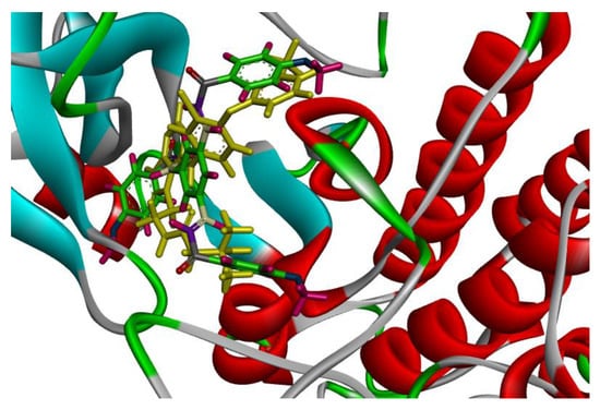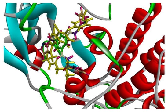 - Morris, G.M.; Goodsell, D.S.; Halliday, R.S.; Huey, R.; Hart, W.E.; Belew, R.K.; Olson, A.J. Automated docking using a Lamarckian genetic algorithm and an empirical binding free energy function. J. Comput. Chem. 1998, 19, 1639–1662. [Google Scholar] [CrossRef]