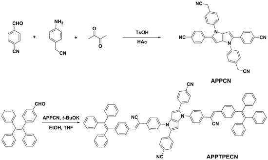 3.2.1. The Generally Synthetic Procedure of Compound 2,6-di(4-Cyanomethylphenyl)-1,5-di(4-cyanophenyl)-1,4-dihydropyrrolo[3,2-b]pyrrole (APPCN)