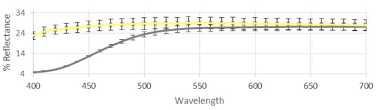 Reflectance curves of hemp essential oil (EO; gray) and its aromatic water (yellow).