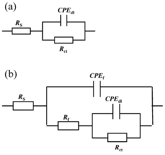 The equivalent circuit used to model the electrochemical behavior of Q235 steel in CO2-saturated 3.5 wt.% NaCl solution containing (a) a blank and (b) individual and mixture of 4-PQ and sulfur-containing compounds.