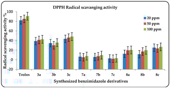 2.2.3. Antioxidant Potential of the Synthesized Compounds