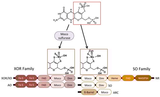 - Garattini, E.; Mendel, R.; Romao, M.J.; Wright, R.; Terao, M. Mammalian molybdo-flavoenzymes, an expanding family of proteins: Structure, genetics, regulation, function and pathophysiology. Biochem. J. 2003, 372 Pt 1, 15–32. [Google Scholar] [CrossRef]