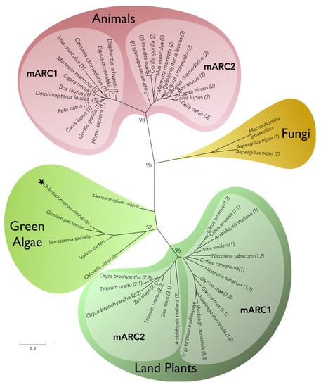 - Chamizo-Ampudia, A.; Galvan, A.; Fernandez, E.; Llamas, A. The Chlamydomonas reinhardtii molybdenum cofactor enzyme crARC has a Zn-dependent activity and protein partners similar to those of its human homologue. Eukaryot. Cell 2011, 10, 1270–1282. [Google Scholar] [CrossRef] [PubMed]