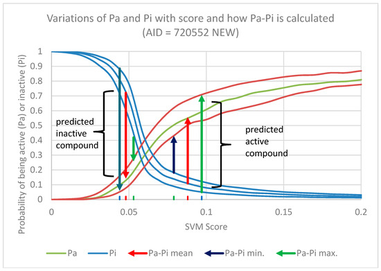 The best threshold was determined by analyzing the value of MCC for each threshold (Table 3), being Pa-Pi ≥ 0.3 for Naïve Bayes and Pa-Pi ≥ 0.25 for SVM. The score of each activity class, in these cases, was calculated by the number of lignans classified as active among all the models belonging to the same class divided by the number of lignans used in the calculations (27) and the square root of the number of models of this class. The division by the square root of the number of models works like a normalization process because as the number of models in the same class increases more compounds are prone to be predicted as active for this class. From our experience, if we divided by the number of models, those classes with a large number of models are penalized, and if we take only the number of compounds the classes with a large number of models are privileged. The division by square root brings some balance to the prediction.