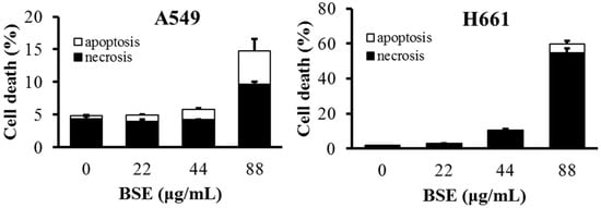 The ratio of apoptosis and necrosis induced by different concentrations of BSE on A549 and H661 cells for 24 h treatment.