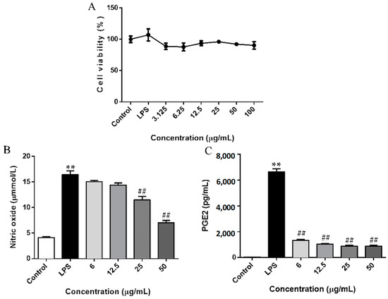 2.2. SCL Decreased the Release of NO and PGE2 in RAW264.7 Cells