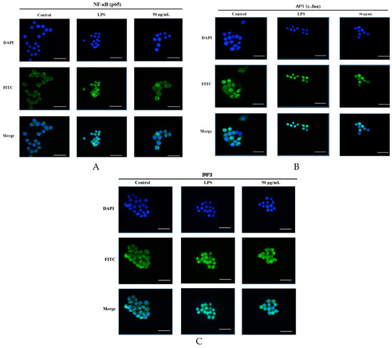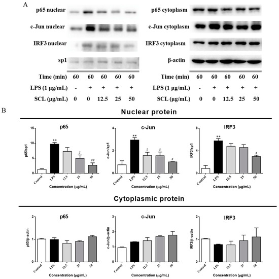 2.6. SCL Suppressed the Nuclear Translocation of AP-1, IRF3, and NF-κB in RAW264.7 Cells
