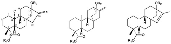 - Ortega, A.; Morales, F.; Salmon, M. Kaurenic acid derivatives from Stevia eupatoria. Phytochemistry 1985, 24, 1850–1852. [Google Scholar] [CrossRef]