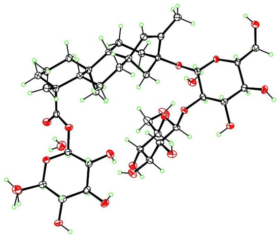 X-ray structure of iso-stevioside dihydrate, with ellipsoids at the 50% level (ORTEP).