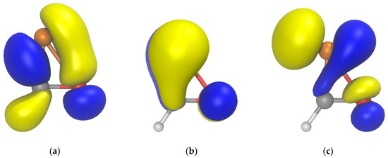 Lewis structural formulae for all closed-shell molecular isomers CHPO found 1a–9a (Scheme 1) were drawn according to the best electronic description, as deduced from standard bond-strength descriptors, natural charges (Table 1), and NBO (natural bond orbital) analysis [35,36]. With this aim, widespread used bond orders quantities, such as the Wiberg bond index (WBI) [37] and the Mayer bond order (MBO) [38,39,40,41,42], were computed. They provide values approaching 1 for single bonds, 2 for double bonds, and so forth. Also, properties derived from the topological analysis of the electron density, in line with Bader’s AIM (atoms-in-molecules) theory [43,44,45], in particular the electron density itself (ρ) and the Lagrangian kinetic energy (G) computed at the bond critical point (BCP), were calculated. The latter was only recently used in characterizing bond strength in phosphorus-containing three-membered heterocycles [46] and, soon afterwards, the Lagrangian kinetic energy density per electron (G/ρ) was reported as a remarkable bond-strength property [47] which correlates with ring strain energies (within a series) when computed at the ring critical points [48].
