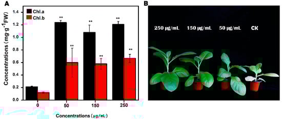 3.3. Effect of MgNPs on Tobacco Growth and Chlorophyll Content