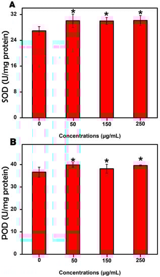 3.4. Evaluation of the Antioxidant Enzyme Activities
