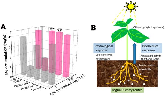 Cai, L.; Liu, M.; Liu, Z.; Yang, H.; Sun, X.; Chen, J.; Xiang, S.; Ding, W. MgONPs Can Boost Plant Growth: Evidence from Increased Seedling Growth, Morpho-Physiological Activities, and Mg Uptake in Tobacco (Nicotiana tabacum L.). Molecules 2018, 23, 3375. https://doi.org/10.3390/molecules23123375