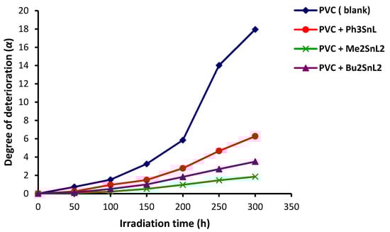 - Ali, M.M.; El-Hiti, G.A.; Yousif, E. Photostabilizng efficiency of poly(vinyl chloride) in the presence of organotin(IV) complexes as photostabilizers. Molecules 2016, 21, 1151. [Google Scholar] [CrossRef] [PubMed]