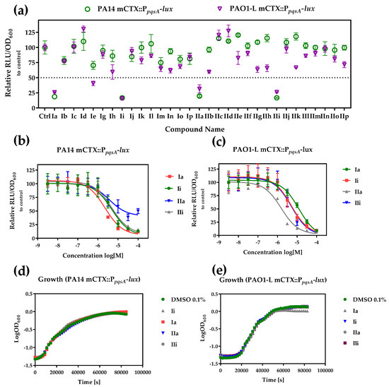 - Lu, C.; Kirsch, B.; Zimmer, C.; de Jong, J.C.; Henn, C.; Maurer, C.K.; Musken, M.; Haussler, S.; Steinbach, A.; Hartmann, R.W.; et al. Discovery of antagonists of PqsR, a key player in 2-alkyl-4-quinolone-dependent quorum sensing in Pseudomonas aeruginosa. Chem. Biol. 2012, 19, 381–390. [Google Scholar] [CrossRef] [PubMed]