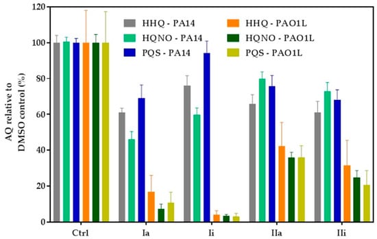 2.4. Impact of Hit Compounds on Alkylquinolone Production