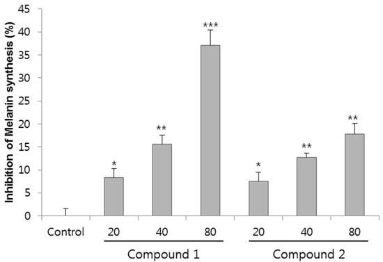 - Lee, D.Y.; Cha, B.J.; Lee, Y.S.; Kim, G.S.; Noh, H.J.; Kim, S.Y.; Kang, H.C.; Kim, J.H.; Baek, N.I. The potential of minor ginsenosides isolated from the leaves of Panax ginseng as inhibitors of melanogenesis. Int. J. Mol. Sci. 2015, 16, 1677–1690. [Google Scholar] [CrossRef] [PubMed]