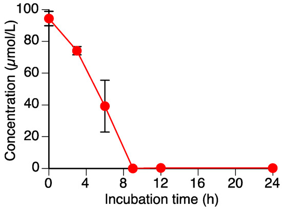 Time-dependent decrease in sakuranetin (1) content in the Rhizoctonia solani suspension culture. Values are reported as the mean ± SD (n = 3).