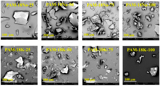 External morphologies of the PAM-18Na and PAM-18K polymers with different ionization degree were observed by Scanning Electron Microscopy (SEMPro, PhenomWorld, Eindhoven, The Netherlands).