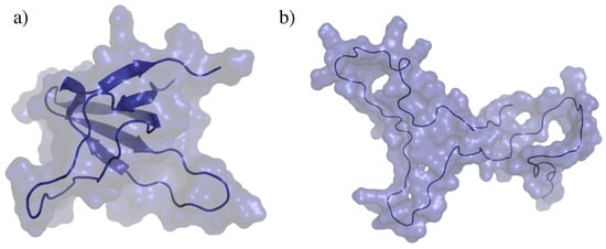 - Bernadó, P.; Blanchard, L.; Timmins, P.; Marion, D.; Ruigrok, R.; Blackledge, M. A structural model for unfolded proteins from residual dipolar couplings and small-angle X-ray scattering. Proc. Natl. Acad. Sci. USA 2005, 102, 17002–17005. [Google Scholar] [CrossRef] [PubMed]