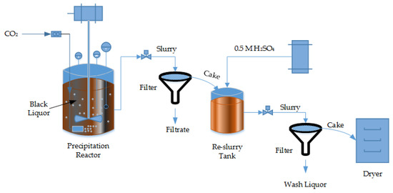 Schematic diagram of lab scale black liquor precipitation using carbon dioxide.