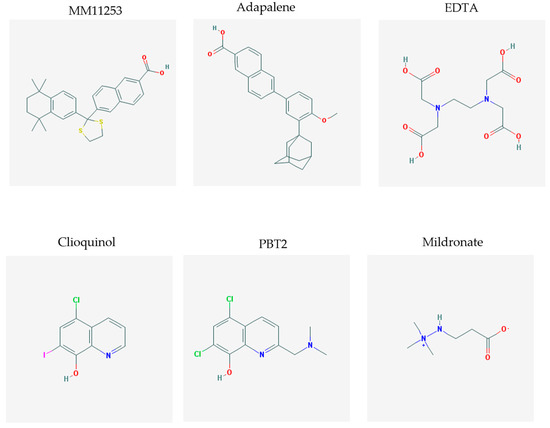 The chemical structures (https://pubchem.ncbi.nlm.nih.gov/) [17] of small molecules with therapeutic potential in AD and PD are shown in Figure 2.