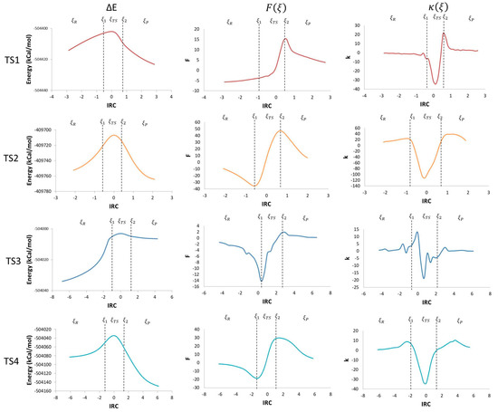 - Toro-Labbé, A.; Gutiérrez-Oliva, S.; Concha, M.; Murray, J.S.; Politzer, P. Analysis of two intramolecular proton transfer processes in terms of the reaction force. J. Chem. Phys. 2004, 121, 4570–4776. [Google Scholar] [CrossRef] [PubMed]