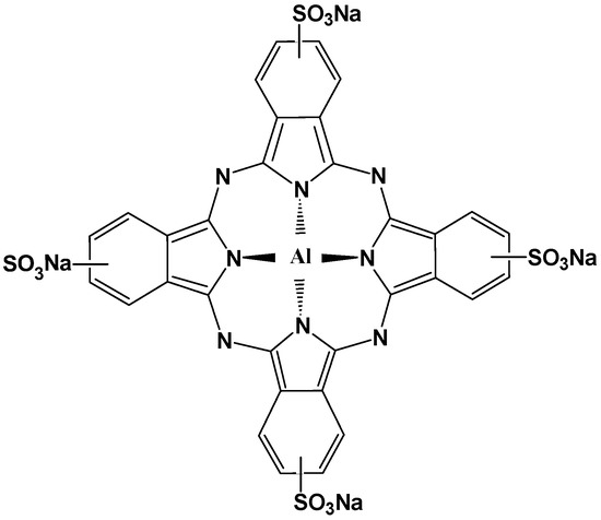 - Ambroz, M.; Beeby, A.; MacRobert, A.J.; Simpson, M.S.C.; Svensen, R.K.; Phillips, D. Preparative, analytical and fluorescence spectroscopic studies of sulphonated aluminum phthalocyanine photosensitizers. J. Photochem. Photobiol. B 1991, 9, 87–95. [Google Scholar] [CrossRef]