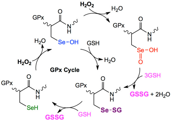 Catalytic mechanism, proposed for the antioxidant activity of GPx.