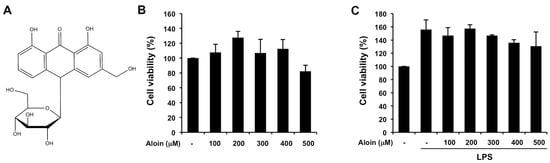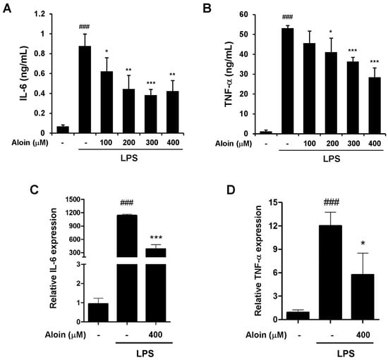 2.2. Aloin Inhibits LPS-Induced IL-6 and TNF-α Expression