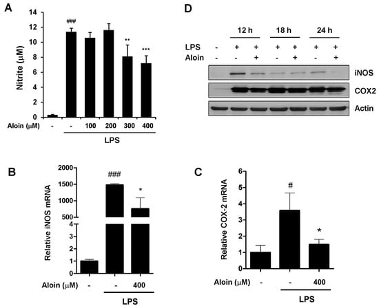 2.4. Aloin Suppresses iNOS and COX-2 Expression