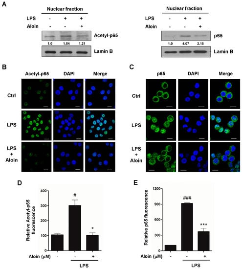 2.6. Aloin Inhibits LPS-Induced Nuclear Translocation of p65